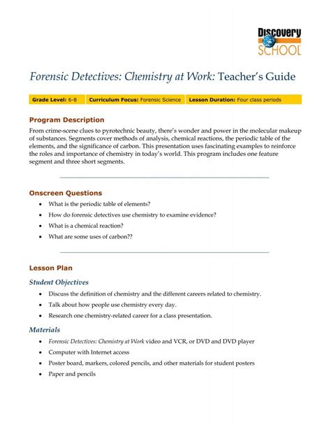 Unlocking the Mysteries of Forensic Chemistry With Forensic Detectives Chemistry At Work Worksheet Answers